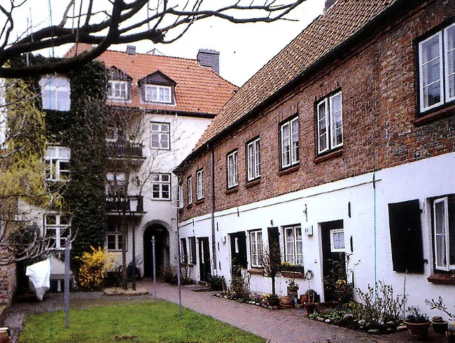 Kleinteiliges Schifferviertel im Bereich der Untertrave mit den Eckbebauungen an der Kleinen Altefähre und großen Altefähre: Relativ kleinmaßstäbliche Bebauung mit kleineren Giebelhäusern und teils auch Traufenhäusern.