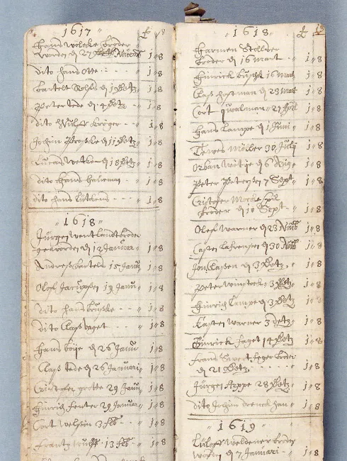 Ohnehin ist zu bemerken, dass im Archiv der Schiffergesellschaft neben den Protokollen, Notizen, Listen u.a. die Aufzeichnungen und Kassenbücher über die Verteilung von Almosen usw. ein Großteil des historischen Schriftguts ausmachen. Eine bis heute nachwirkende Entscheidung fiel, als man am 12. Januar 1600 das im Jahr zuvor erworbene Gebäude in der Engelsgrube zu Armenwohnungen bestimmte. Zwei Jahre später richtete man weitere Armenwohnungen, den Schiffergang, ein