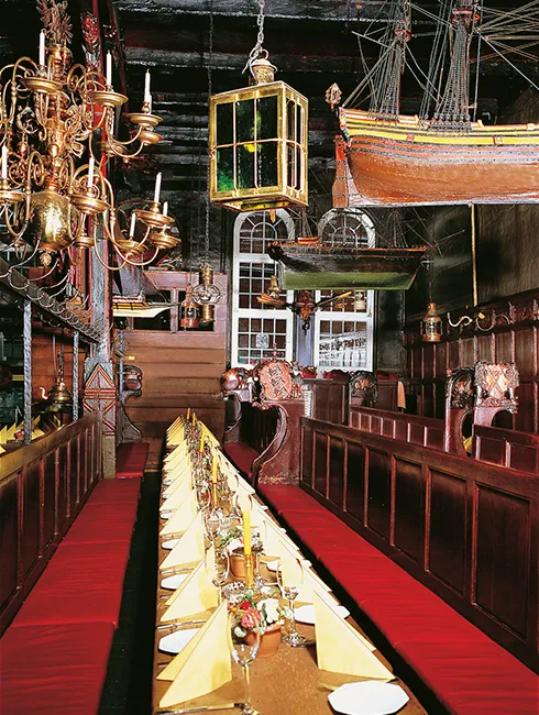 Besonders hervorgehoben wurde die erhöhte Bank der Älterleute mit dem sogenannten Beichtstuhl. Im Laufe der Zeit von 1535 bis heute trugen die Schifferbrüder in ihrer Versammlungshalle zusammen, was ihnen wertvoll erschien, entstanden ist einmalige museale Einrichtung.